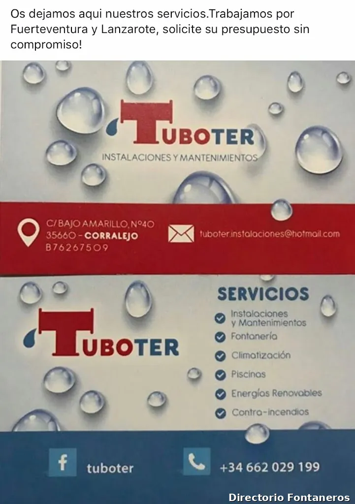 El horario podría no estar actualizado. Contacte con Tuboter Instalaciones y Mantenimientos SL para asegurarse.