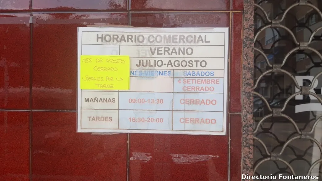 Tienda de artículos de fontaneríaHorario de apertura: